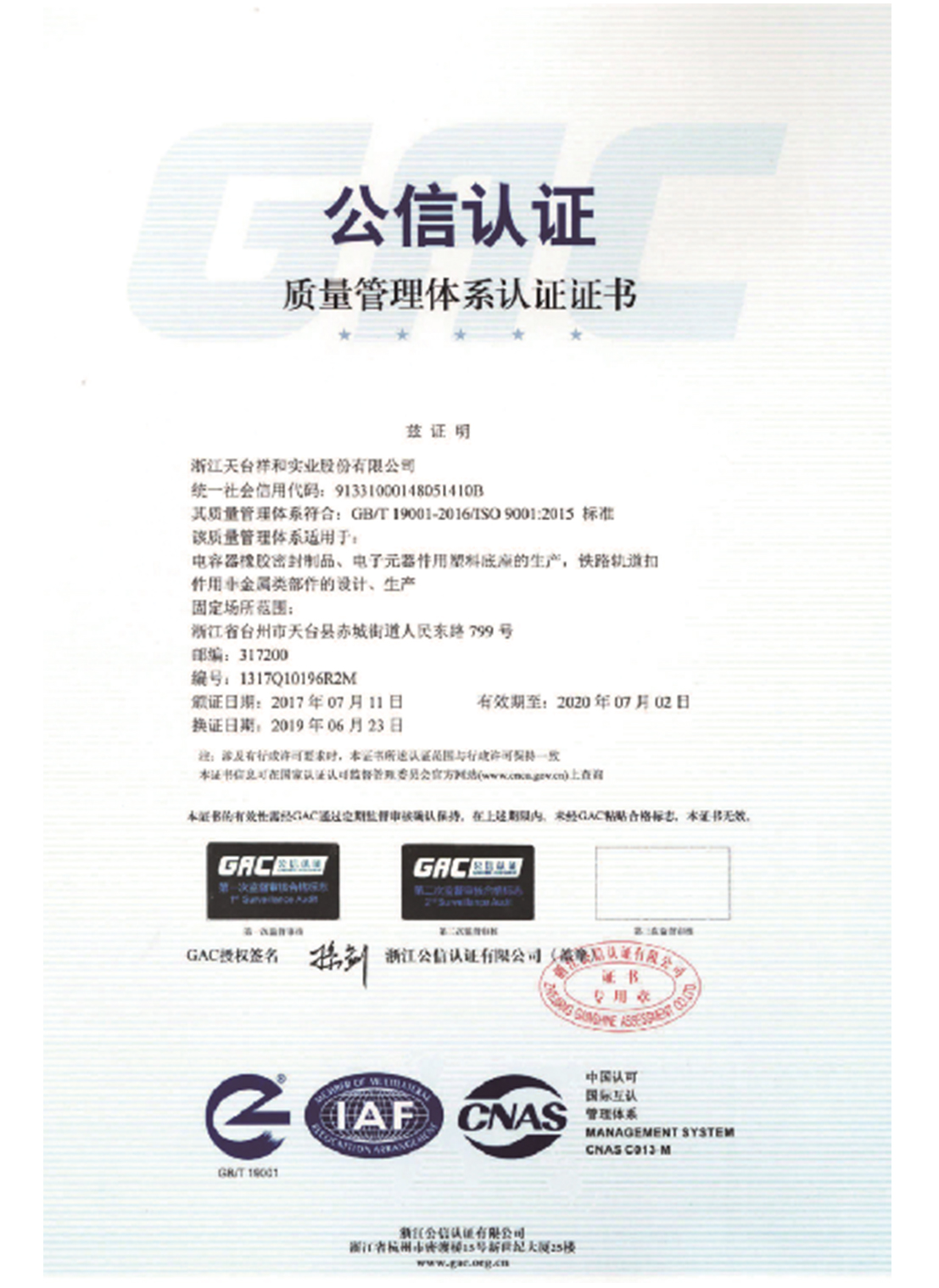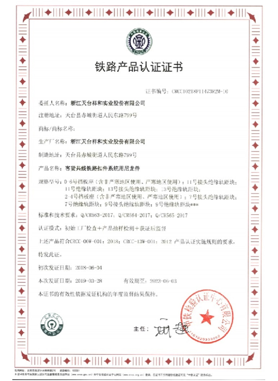 In the early 1990s, the company started to set foot in railway track fastener products. According to the drawings provided by the Ministry of Railways, the company successfully developed the railway rubber cushion board. In 1994, it became the first product to win the license to manufacture railway industrial products, and has since retained the license and been recognized as a famous brand product in Zhejiang Province.